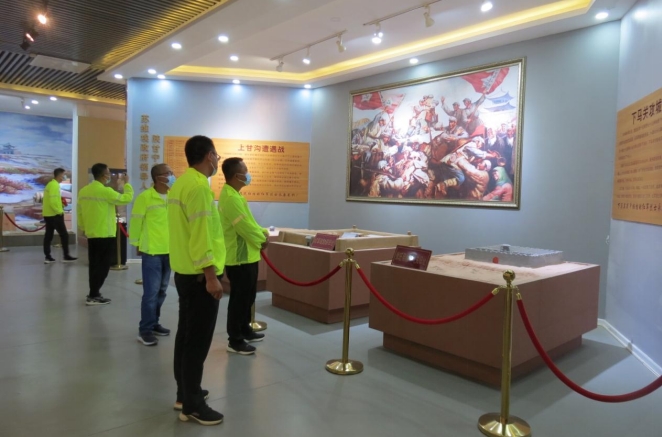 項(xiàng)目部全體職工來到同心縣紅軍西征紀(jì)念館,在陳列室里,集體參觀了革命先烈照片、烈士遺物、破損的武器和用具,認(rèn)真接受了紅色革命傳統(tǒng)教育和黨性的洗禮,一幅幅反映歷史的照片、一件件歷經(jīng)硝煙的史物、一段段感人至深的事跡無不深深地感染著每位職工。