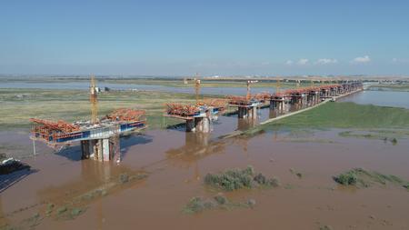 我公司承建的紅崖子黃河公路大橋,上部結(jié)構(gòu)采用波形鋼腹板預(yù)應(yīng)力混凝土變截面連續(xù)箱梁,全橋長3398m,主橋長1384m。該橋是寧夏第二座波形鋼腹板變截面連續(xù)箱梁橋,也是區(qū)內(nèi)主橋聯(lián)長最大的連續(xù)梁橋。