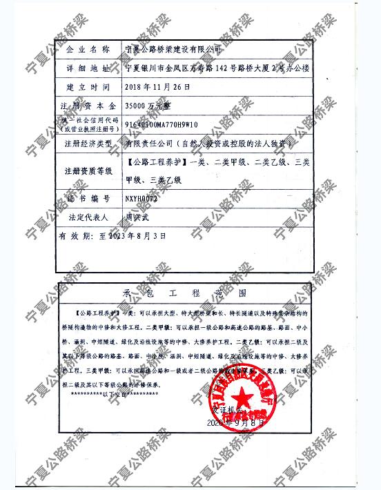 寧夏公路橋梁建設有限公司建筑業(yè)