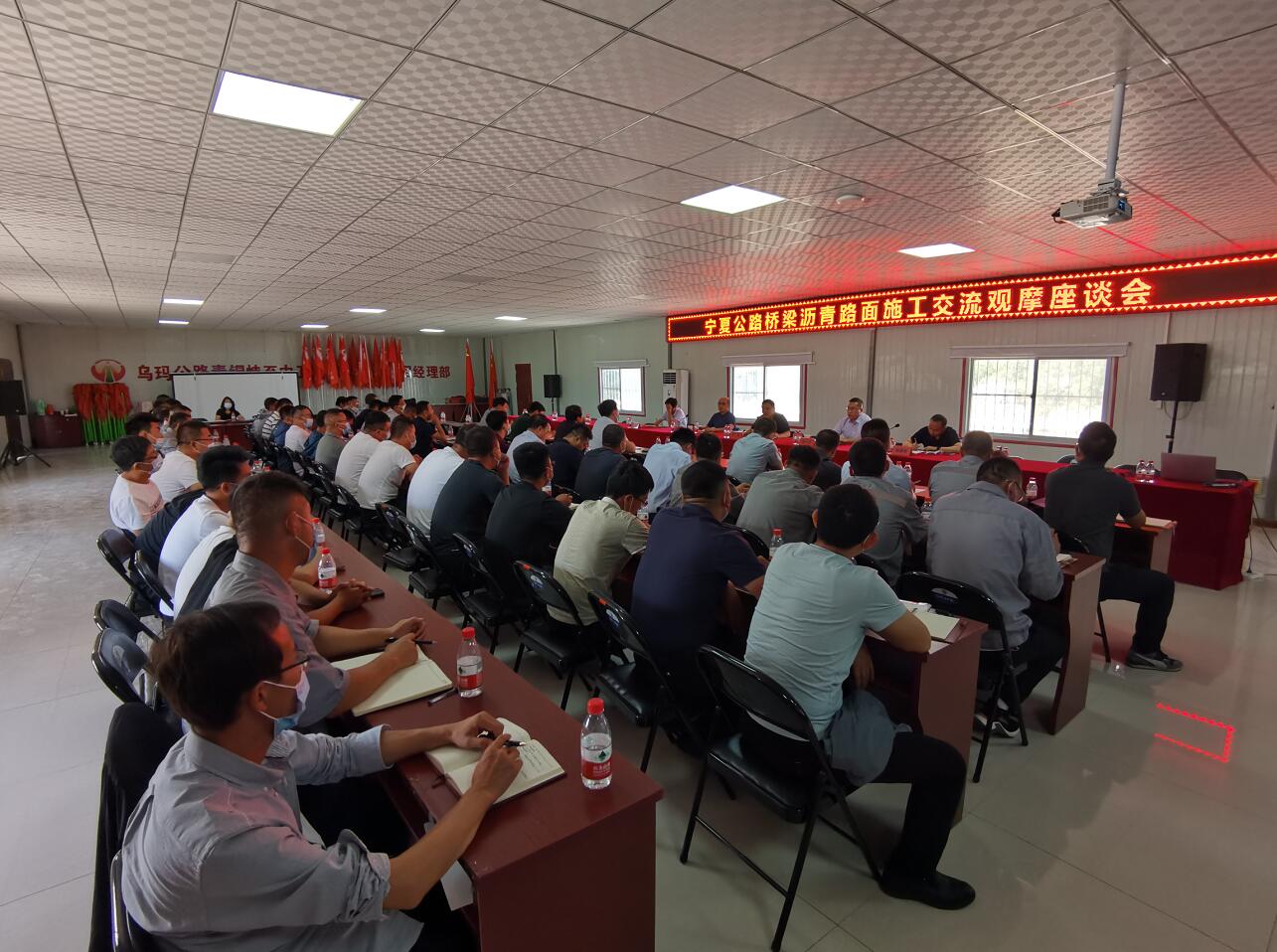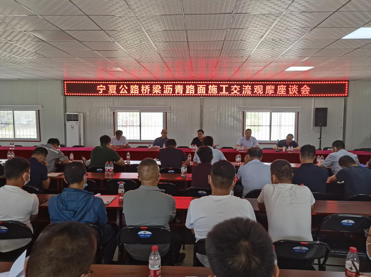 在瀝青路面施工現(xiàn)場(chǎng),全體參觀人員聽取介紹、實(shí)地觀摩,深入了解了烏瑪 A5 項(xiàng)目瀝青面層所具有良好的密實(shí)性、均勻性和行車舒適性,大家一致認(rèn)為取得效果良好的路用性能和質(zhì)量,與項(xiàng)目的系統(tǒng)策劃控制、試驗(yàn)技術(shù)扎實(shí)運(yùn)用是密不可分的。隨后,烏瑪A5 標(biāo)項(xiàng)目和公司中心試驗(yàn)室分別就瀝青路面試驗(yàn)技術(shù)與早期病害防治技術(shù)作了主題交流報(bào)告,在建項(xiàng)目多位管理人員踴躍發(fā)言,分享路面施工經(jīng)驗(yàn)。