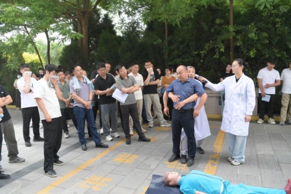 本次演練模擬6樓辦公室發(fā)生電氣火災(zāi),并伴有大量濃煙。發(fā)現(xiàn)火情后,現(xiàn)場(chǎng)人員立即行動(dòng),向公司應(yīng)急指揮中心報(bào)告,啟動(dòng)公司火災(zāi)事故應(yīng)急預(yù)案,同時(shí)各應(yīng)急救援小組迅速響應(yīng),有序組織開(kāi)展人員疏散及應(yīng)急救援。演練過(guò)程中穿插對(duì)火災(zāi)疏散逃生技巧、初期滅火技巧、滅火器的選型等進(jìn)行講解、專人示范。最后寧夏頤陽(yáng)醫(yī)院老師針對(duì)肢體受傷緊急包扎救治和心肺復(fù)蘇等進(jìn)行了現(xiàn)場(chǎng)示范和講解培訓(xùn)。