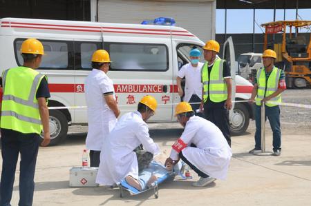 本次演練分報警組、警戒組、搶險組、消防組、醫(yī)療救護組、事故調查組和綜合協(xié)調組7個小組,由項目經理秦國榮擔任總指揮,總工王飛擔任現場指揮。事故發(fā)生后,總指揮立即啟動火災事故應急預案,并通知現場指揮帶領各應急小組趕往現場,立即展開工作。整個演練過程中,應急指揮小組臨危不亂、指揮得力。各演練小組反應迅速、密切配合,在大家的共同努力下,圓滿的完成了本次火災事故應急救援任務。演練活動期間,項目部邀請寧東鎮(zhèn)人民醫(yī)院醫(yī)護人員進行了應急救援知識講解,與大家交流了安全事故發(fā)生時的注意事項,大家積極踴躍提問發(fā)言,營造了良好的現場交流氣氛。