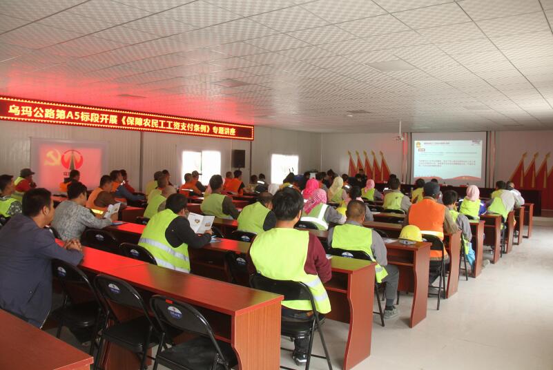 為深入貫徹落實《保障農(nóng)民工工資支付條例》,進一步加強 農(nóng)民工工資管理。4 月 29 日,烏瑪五標和省道 308 項目聯(lián)合開 展《保障農(nóng)民工工資支付條例》專題講座。