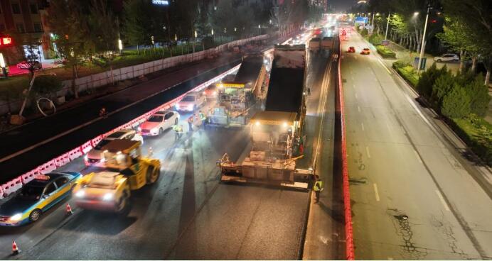 為保障施工工期,保證各工序的連續(xù)性,項目24小時輪班作業(yè),天源達橋拼寬、南側(cè)下穿通道、虹橋路改造及民族街改造四個工作面平行施工。