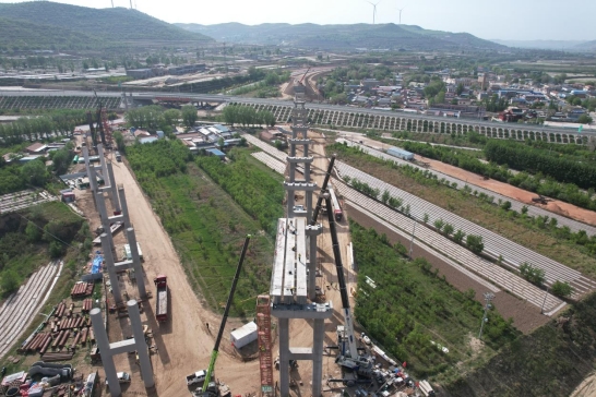 5月19日,G566西吉縣城至夏寨連接線工程項目第一片T梁順利安裝完成。