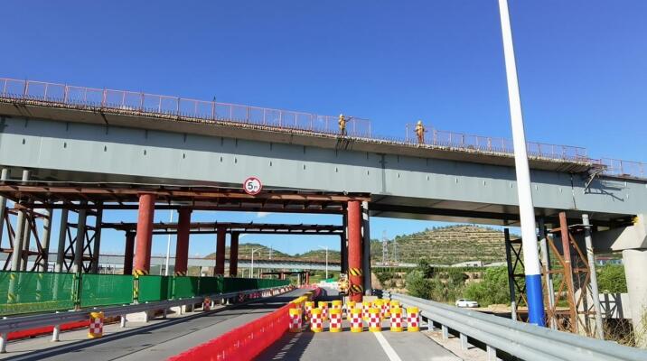 夏寨大橋上跨西會(huì)高速施工安全風(fēng)險(xiǎn)高,施工難度大、任務(wù)重。為保證高質(zhì)量完成節(jié)點(diǎn)目標(biāo),項(xiàng)目部倒排工期,精心籌劃,全體參建者團(tuán)結(jié)一心,爭分奪秒搶工期,攻堅(jiān)克難保節(jié)點(diǎn)。于2024年7月10日上跨西會(huì)高速涉路施工許可證予以批復(fù),2024年7月26日開始對(duì)西會(huì)高速進(jìn)行交通管制。
