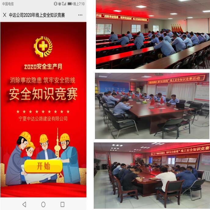 安全文化是安全生產(chǎn)的靈魂,安全教育和培訓又是安全文化發(fā)展的動力。寧夏中達公路建設(shè)有限公司結(jié)合“安康杯”競賽活動及安全生產(chǎn)月活動安排,積極組織公司各級開展以“消除事故隱患,筑牢安全防線”為主題的線上、線下安全生產(chǎn)知識有獎競賽活動,檢驗、督促各級安全教育培訓工作落實到位。