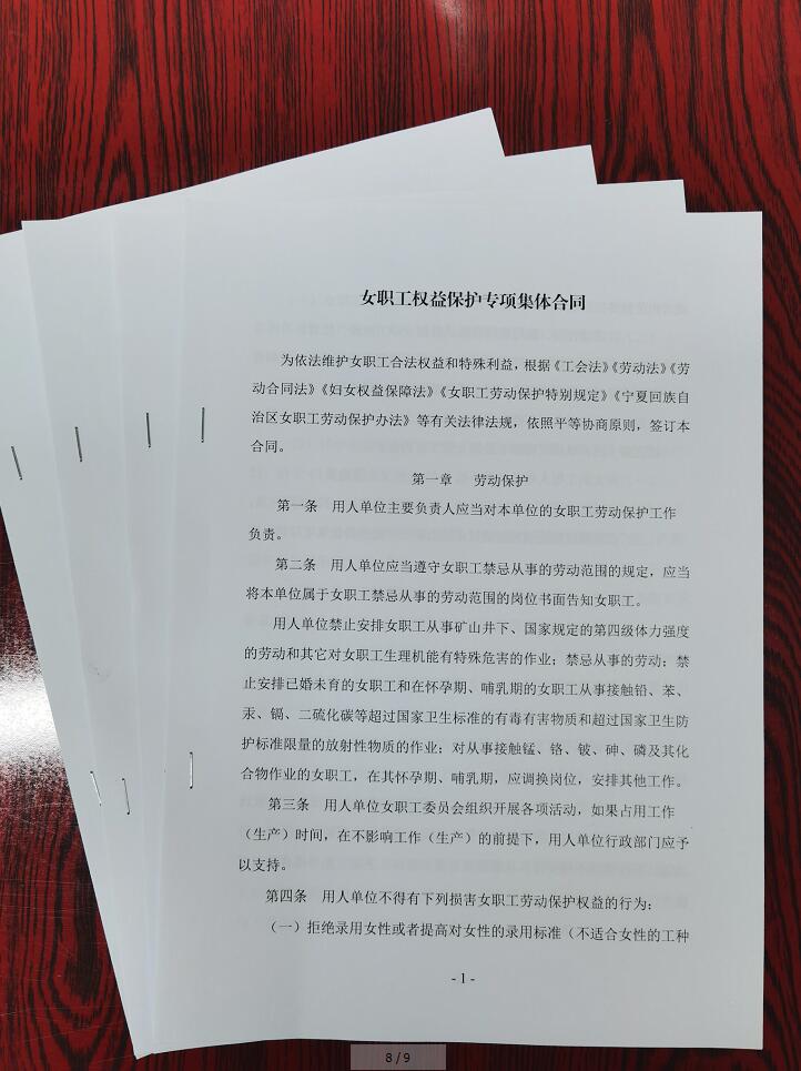 嚴(yán)格按照上級(jí)單位要求進(jìn)一步深化女職工權(quán)益保護(hù)工作,結(jié)合自身情況和女職工維權(quán)訴求開展專項(xiàng)集體合同簽訂工作,依法維護(hù)女職工合法權(quán)益和特殊利益。