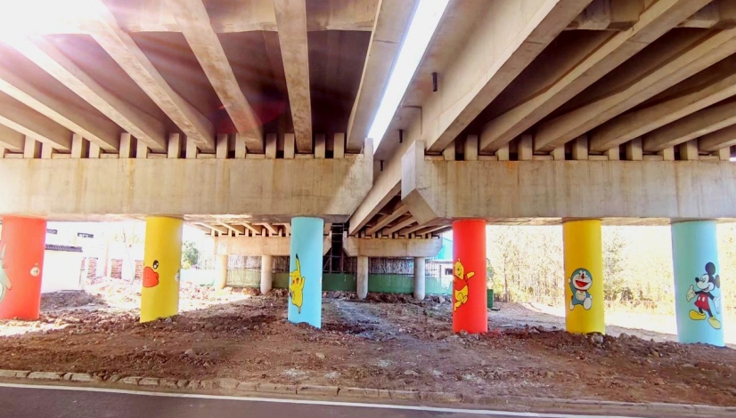 近日,臨沂至滕州公路第三合同段柳清河大橋建設段立柱新添幾道彩色卡通圖畫,與柳青河畔的彩虹小院和彩虹路人文景觀巧妙交融、相映成趣,成為沿途一道靚麗的風景線。