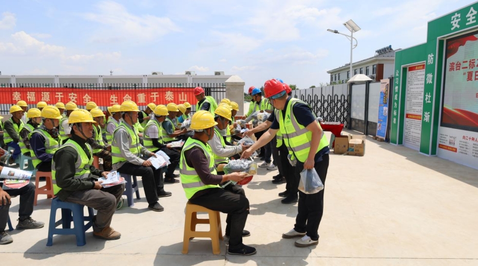 為切實(shí)保障施工一線勞動者們身心健康,6月16日,濱臺二標(biāo)項(xiàng)目部組織開展“夏日送清涼”慰問活動,為他們送上防暑藥品、冰糖、水杯、菊花、茶葉、冷飲等防暑用品。
