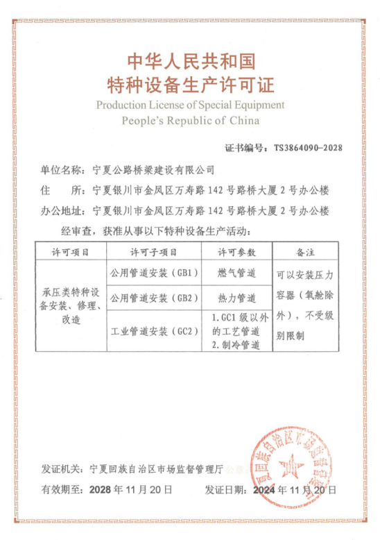 特種設(shè)備生產(chǎn)許可證的獲得使公司資質(zhì)體系更加完善,為公司在實(shí)施特種工程方面提供了良好基礎(chǔ)和有力保障,也必將進(jìn)一步拓寬經(jīng)營開發(fā)業(yè)務(wù)范圍,有力提升公司的行業(yè)影響力和市場競爭力。