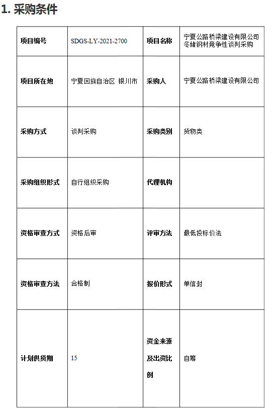 寧夏公路橋梁建設(shè)有限公司冬儲鋼材競爭性談判采購公告